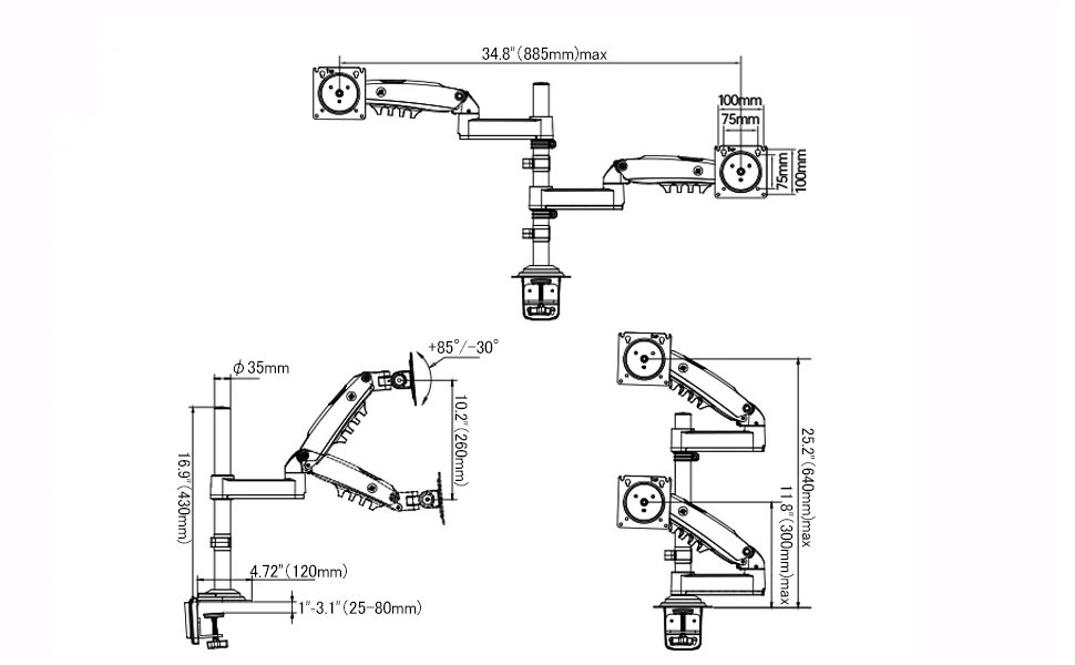 Designed for maximum flexibility, this monitor arm offers:
