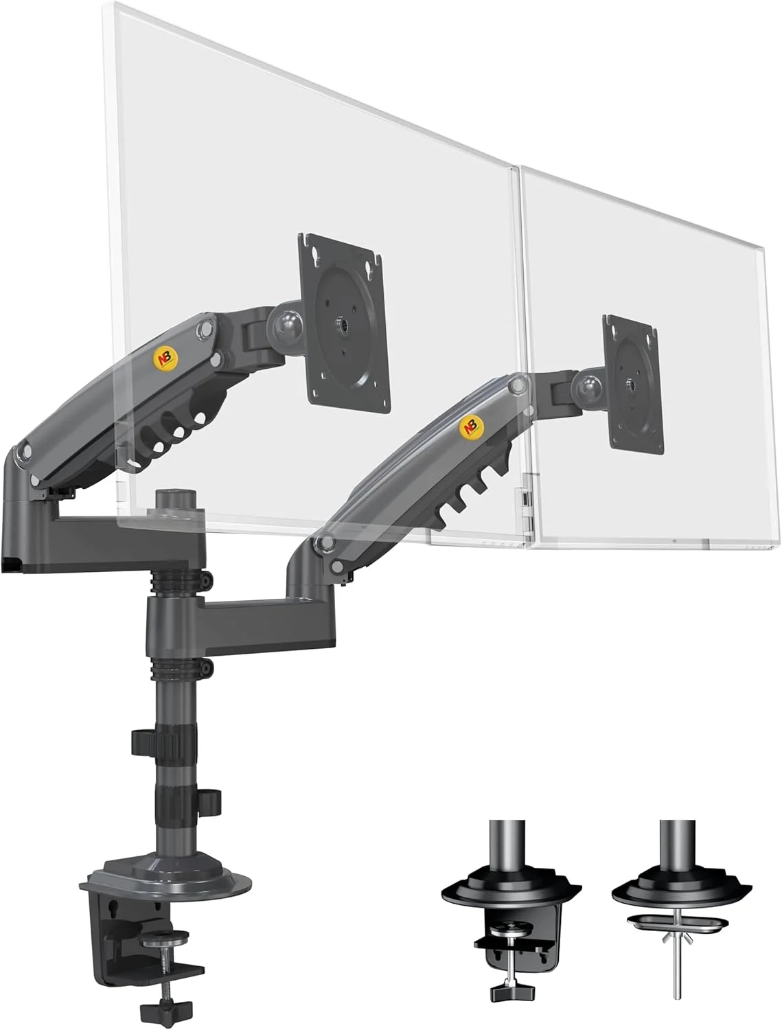 NB North Bayou 17–27 Inch Gas Spring Monitor Arm Desk Mount – Adjustable Aluminum Tabletop Stand with Clamp & Grommet Base | VESA 75×75 100×100 | 2–9KG Load | Grey Black