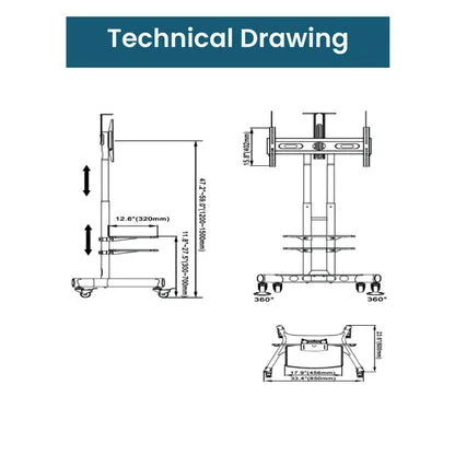 The TF-1500S features a reinforced steel frame engineered for stability and durability. Its robust construction ensures that large televisions remain securely mounted while maintaining excellent balance during movement.