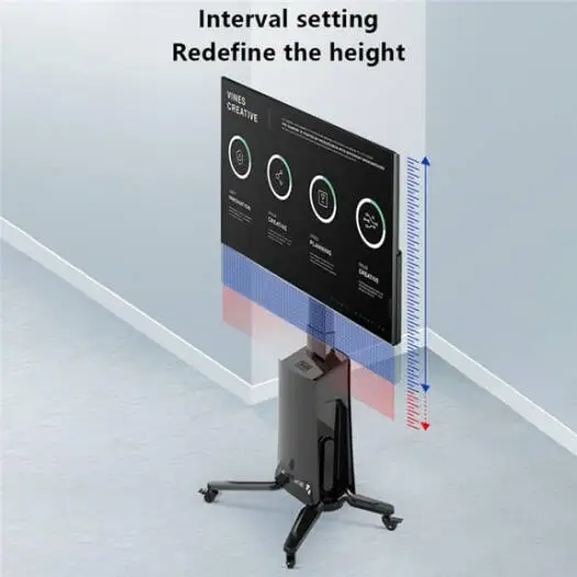 Experience the next level of convenience and innovation with the NB Ergonomic Motorized TV Floor Stand, now available in Riyadh. Designed for both professional and home environments, this motorized mobile TV stand delivers a seamless blend of style, functionality, and durability, making it ideal for conference rooms, classrooms, showrooms, and smart homes.
