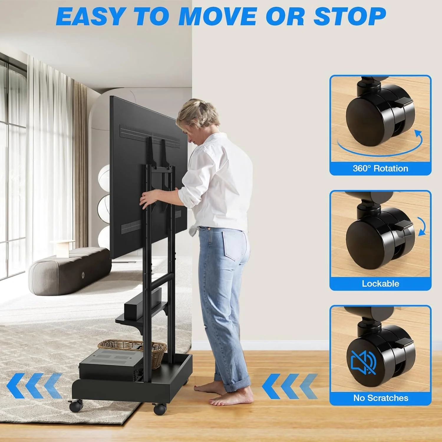 Rfiver MT7001 Heavy-Duty Mobile TV Cart with Adjustable Shelf – 40–86 Inch TVs